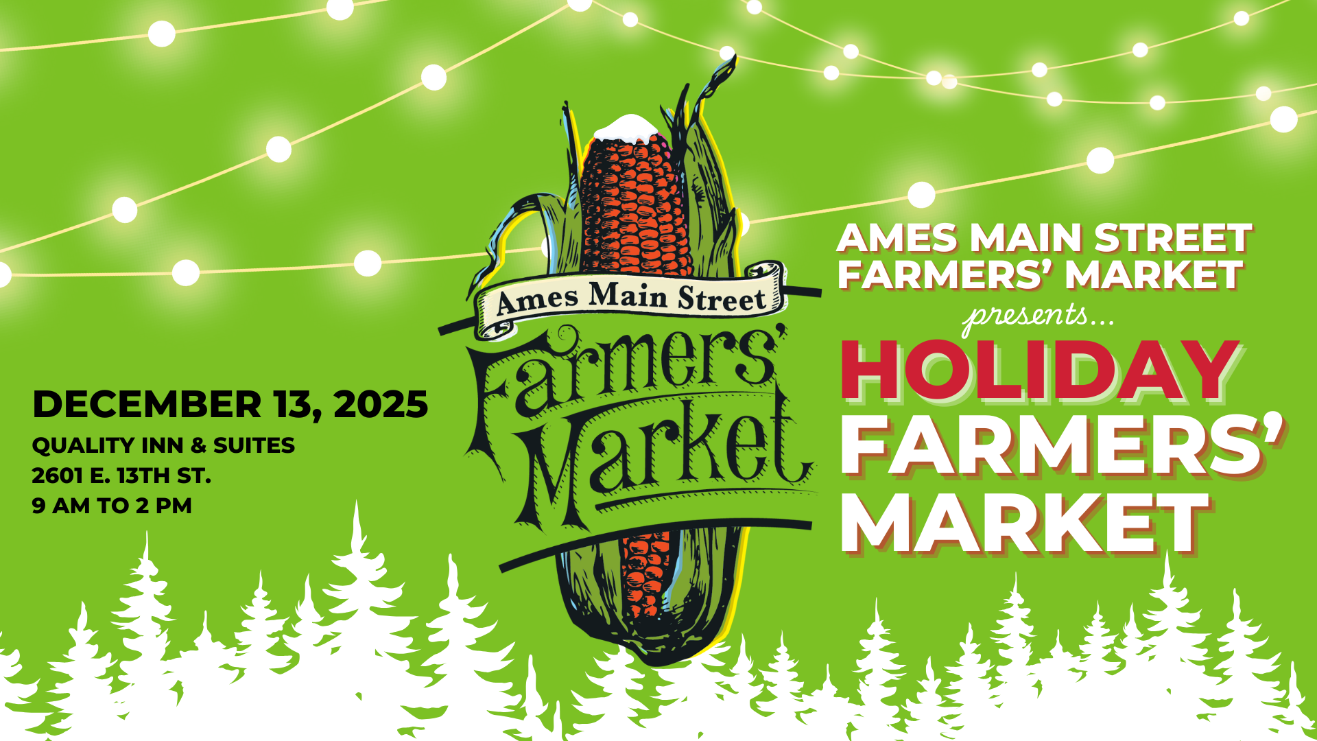 Mark your calendars for December 13 for a festive shopping experience with Ames Main Street’s Holiday Farmers’ Market! Discover unique gifts, festive decor, farm-fresh meats, treats, and so much more — all handcrafted or homegrown by local artisans and producers. Bring holiday cheer to your home and shop local this season!